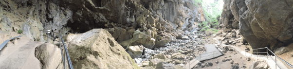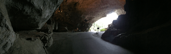 I am so glad that I did push myself to do the walk around the premises for it was grand. One of the first striking things of the place is descending down into the valley where the cave’s guesthouse is. From such a narrow and tiny road, comes out into a huge opening with a creek bordering the road and a cavernous entrance. Bigger that 10 buses at one point, it took all my might not to drop a rev bomb as I rode through it! 😉