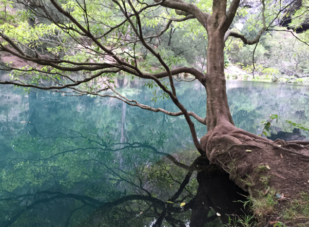 Around the bend, was a little dammed area holding crystal clear, blue water. It was quiet, it was still. It was peaceful.