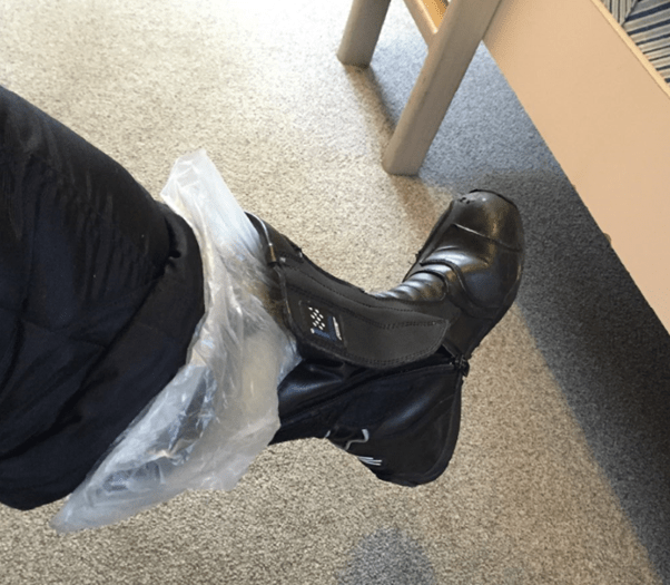 I only had a protein shake and an apple the night before so I woke up (correction; my stomach woke me up) fairly early. I was most appreciative that the modest heater in the cabin had done a pretty good job about drying most my gear. Thank god for small favours, and I was put in a better mood when I saw that the weather was going to be quite good today – bonus! However for those pesky rainclouds which drop enough to soak you and then ping off, I found a few plastic bags and made makeshift waterproof socks, as my boots were still fairly wet and squelchy.