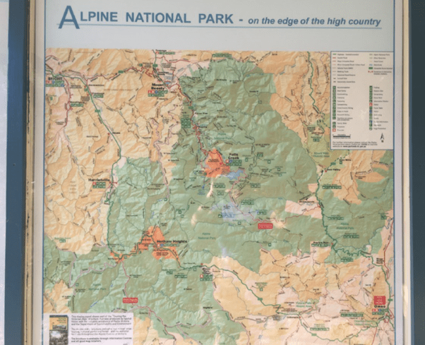 Once the lawnmower was packed, and I had a muesli bar, I got going down the Alpine way admiring the landscape of ghost gums and tall vegetation.