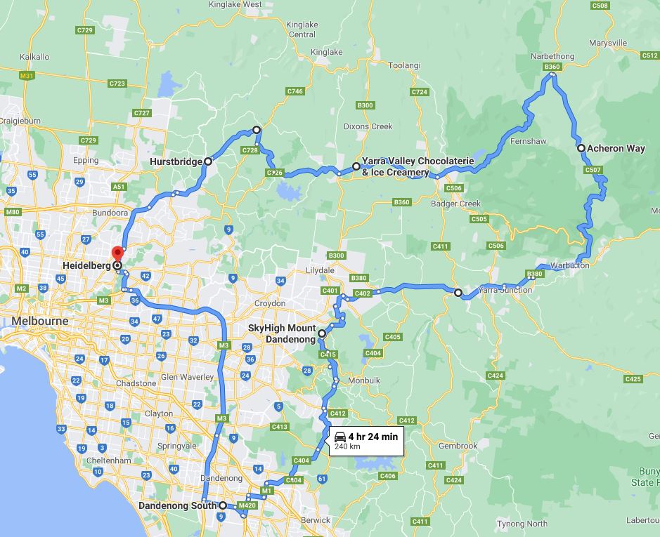 Sitting in coffee shops, and libraries to use wifi, I started plotting potential roads and places that I wanted to check out. I knew I had some time up my sleeve, but there could also be the possibility that the consulate would call me for an interview to review my application within short notice. Due to this I could go touring but had to be within a 2 day ride back to Melbourne, which was about my only constraint at the moment.