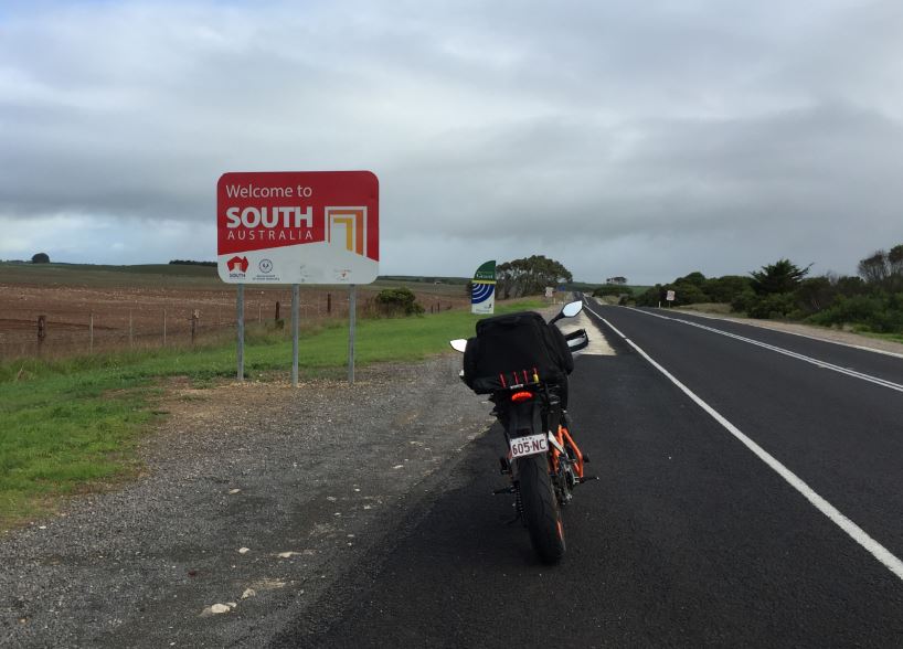 Fueled up at Port Fairy, again another little sleepy seaside town, and kept pressing on to the border. I was a little underwhelmed when I did come to it about an hour later as I think I was expecting a much bigger sign, archway or a BIG thing. Not sure. But did the obligatory photo op and saddle back on.