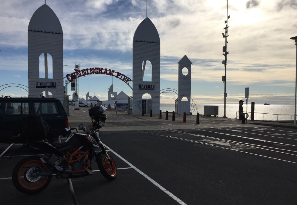 I needed to get out of dodge before the peak hour traffic started clogging up the city, as I needed to cross Melbourne city to get to the western side and away towards the Great Ocean Road. From the north to the west getting onto the Pricess Freeway early in the morning was the best choice. I was able to skip most the peak hour, albeit freeze my tush off. The first stop was for breakfast at Cunningham Pier in Geelong. Where I had the fruit and muesli bar I brought with me, but needed something warm, so went to one of the open coffee shops for a hot drink. Good to top up with warmth and sugar 🙂