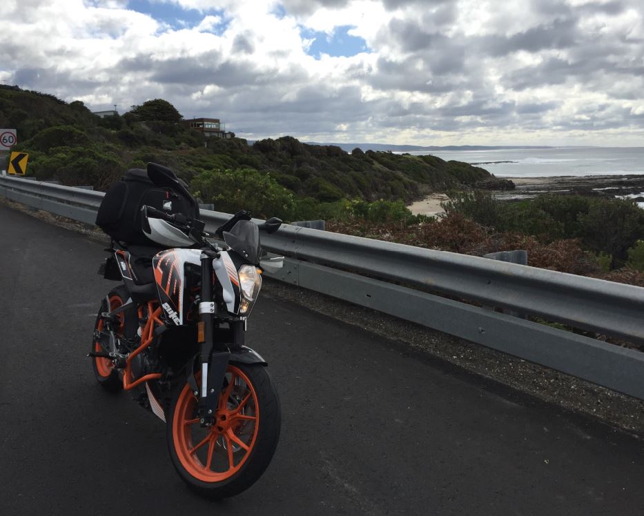 At this stage I didn’t know where the GOR officially started; but later I was told that it commenced from a specific round in Bells Beach. To me it was when I came round a bend and I was confronted by rub-rail as far as the eye could see, the Bass Straight in front of me, and rugged cliffs were on my right hand side.