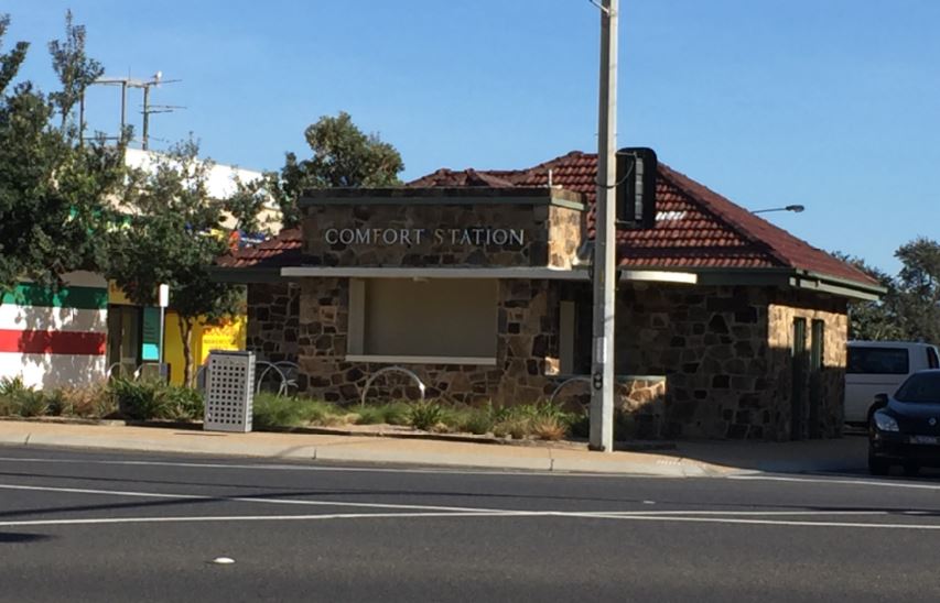 Belly happy, I headed south, following as close as I was able to the bay on my right, so I could see the type of places Melbournites call a ‘beach’. I kept going south until I needed a break and the little ladies’ room after having processed breakfast. For this I spotted a swimming pavilion which certainly fit the bill to what my needs currently were.
