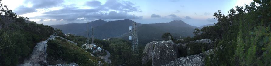 I followed my friend until we parked at the bottom of Mt Obeon somewhere and secured the bikes. All I know is that I secured all the stuff on the bike, got my feather down jacket with me, and we started walking up the hill. In Queensland when you read bushwalking signs it generally tells you the total round trip distance. What I didn’t know with this one is that it seems in Vict, it only tells you one way distance. So I looked at the 3.5km on the sign and thought that wasn’t going to be bad at all in full moto gear and boots and we’d make it up top with plenty of time for photos and then back down to get on our bikes and get to accommodation before sun down…..